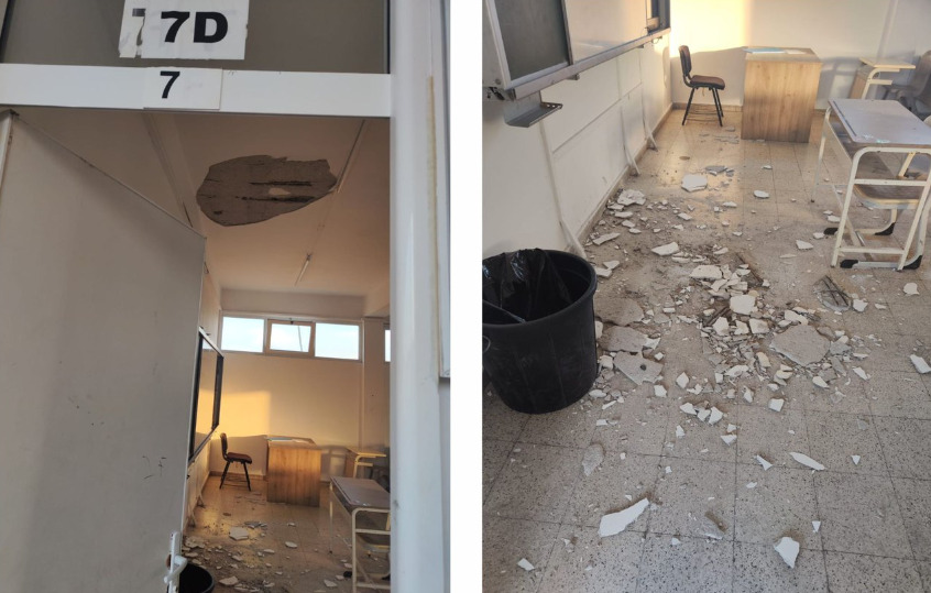 Kıbrıs Türk Orta Eğitim Öğretmenler Sendikası (KTOEÖS), tavanı çöken sınıfın fotoğraflarını sosyal medya hesabından duyurdu.