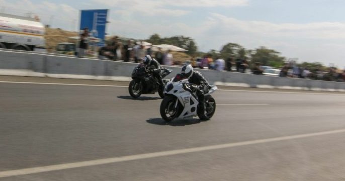 Kıbrıs Türk Motosiklet Kurumu Lefkoşa-Güzelyurt ana yolundaki Serhatköy alt geçidi ile Mevlevi çemberi arasında çift şeritli yolda motosiklet drag yarışı düzenliyor.