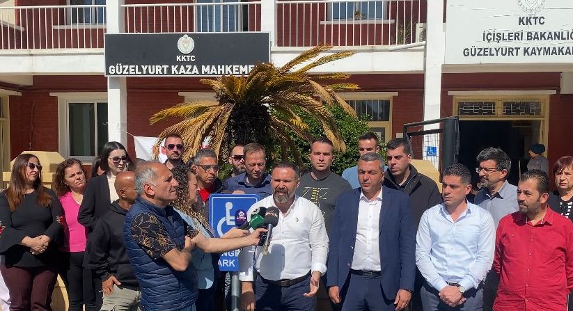 İki sendika konuyla ilgili Güzelyurt Kaza Mahkemesi önünde basın açıklaması yaptı.