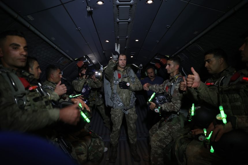Kıbrıs Barış Harekatı’nda görev icra eden ve sancağında 2 üstün cesaret ve feragat madalyası olan Kayseri 1. Komando Tugayı tarafından gerçekleştirilen Erciyes-2023 Tatbikatı, Hava Kılavuz Harekatı kapsamında gece atlayışıyla start aldı.