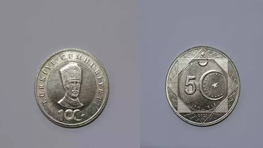 5 TL madeni paraların ön yüz ve arka yüz deseni