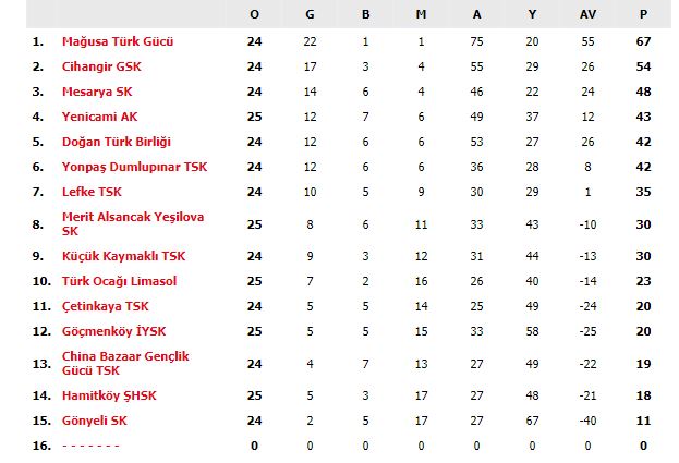 AKSA Süper Lig’de normal sezonun sonuna doğru geliniyor. Ligi tamamlanasına beş hafta kala lider Mağusa Türk Gücü, en yakın rakibi Cihangir’in 13 puan önünde yer alıyor.