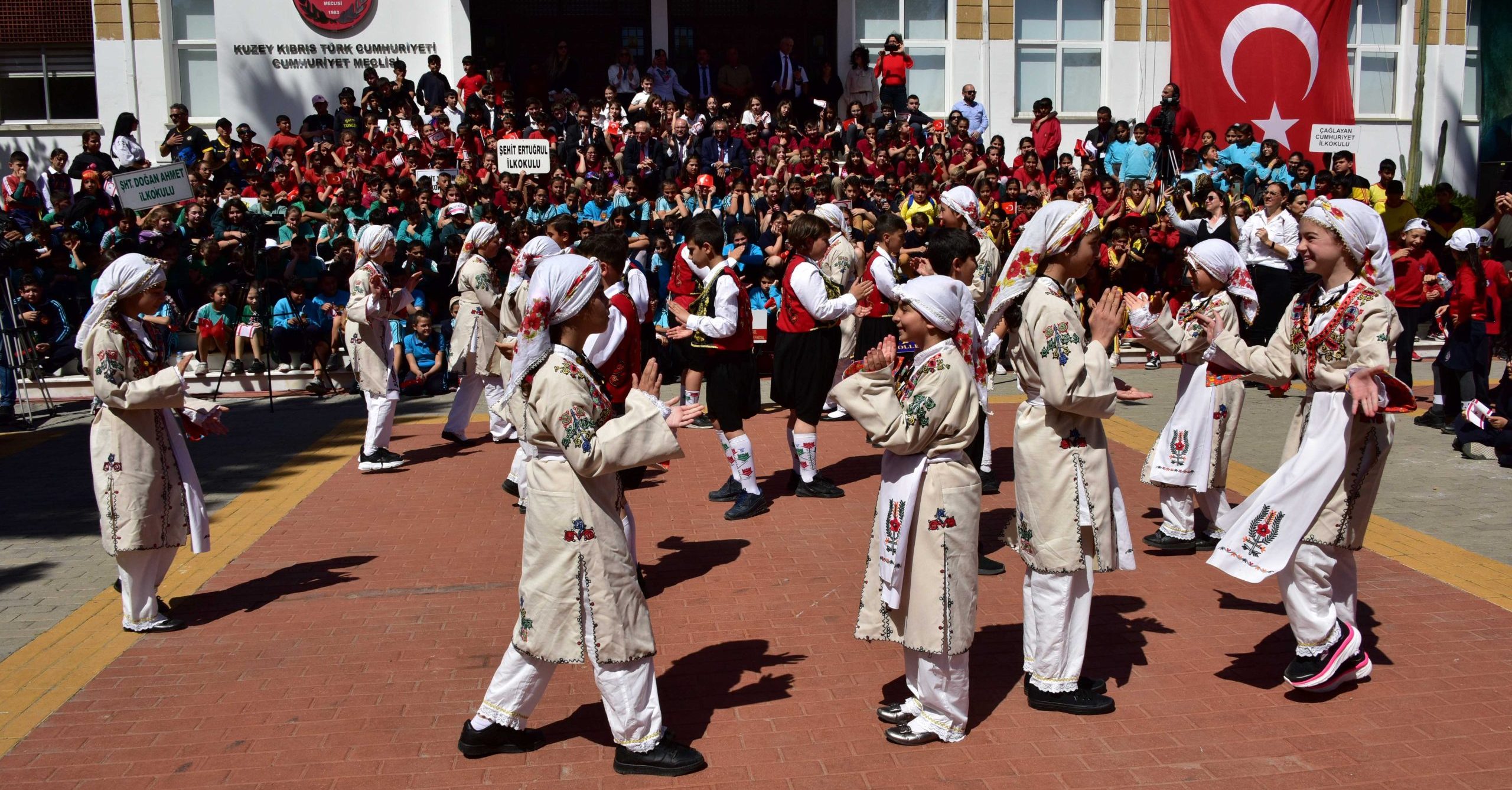 Lefkoşa’da Atatürk Büstü önünde düzenlenen törende, Lefkoşa bölgesindeki ilkokul öğrenci ve öğretmenleri de hazır bulunurken, 6 Şubat’ta Türkiye’deki depremde hayatını kaybeden Gazimağusa Türk Maarif Koleji öğrenci, öğretmen ve velilerin anısına “Şampiyon Melekler kalbimizdesiniz” yazılı pankart açıldı.