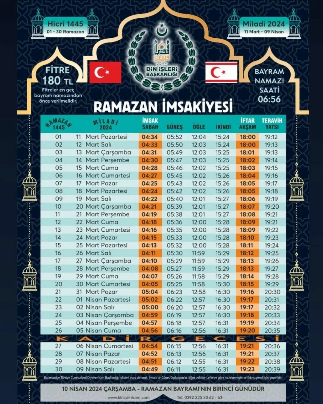 İFTAR VE SAHUR VAKİTLERİ LEFKE’YE GÖRE HAZIRLANDI
