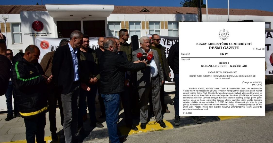 Resmi Gazete’de yayımlanan “2023 Grev Yasağı (Kıbrıs Türk Elektrik Kurumu) Emirnamesi” ile El-Sen’in veya diğer sendikaların kurumda grev yapmaları 60 gün süreyle yasaklandı.
