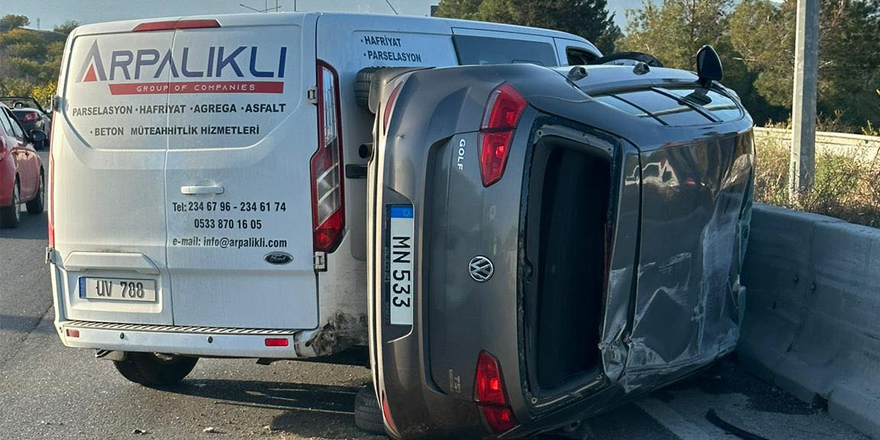 Dün Saat 17.50 sıralarında, Lefkoşa – Girne Anayolunun 11-12 km’leri arasında, Seyit Yusuf Hacıosmanoğlu (E-23), yönetimindeki MN 533 plakalı salon araç ile Girne istikametine doğru seyrettiği sırada dikkatsizce önünde aynı istikamette seyreden araçları geçmeye çalıştığı sırada sağ şerit içerinde Girne istikametine doğru seyreden Doğan Açıkgöz (E-44) yönetimindeki UV 788 plakalı van aracın arka kısmına çarpıp sağ yan kısmı üzerine devrilmiştir. Kaza sonucu yaralanan olmadı. Soruşturma devam etmektedir.