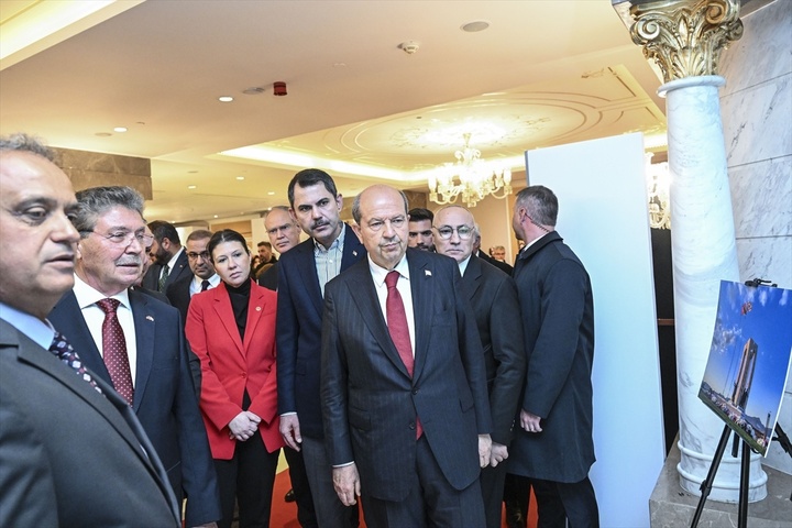 Buluşma kapsamında düzenlenen “Kuzey Kıbrıs’ı İstanbul’da Yaşamak” sergisinin açılışını yapan Tatar, Üstel ve Kurum, daha sonra sergiyi gezdi.