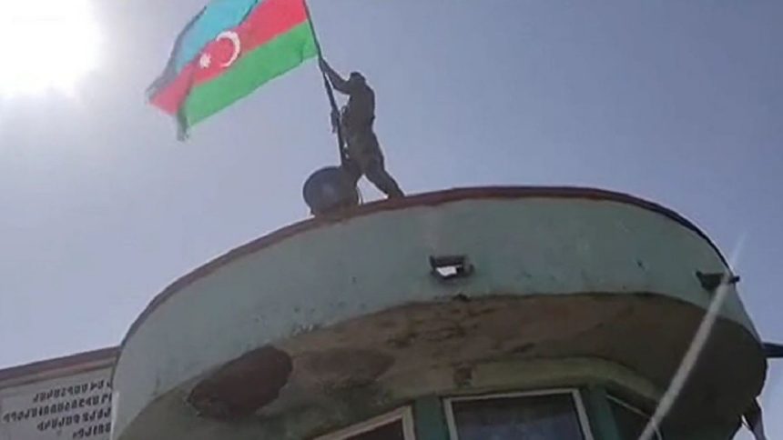 Hocalı’da Azerbaycan bayrağı dalgalanıyor